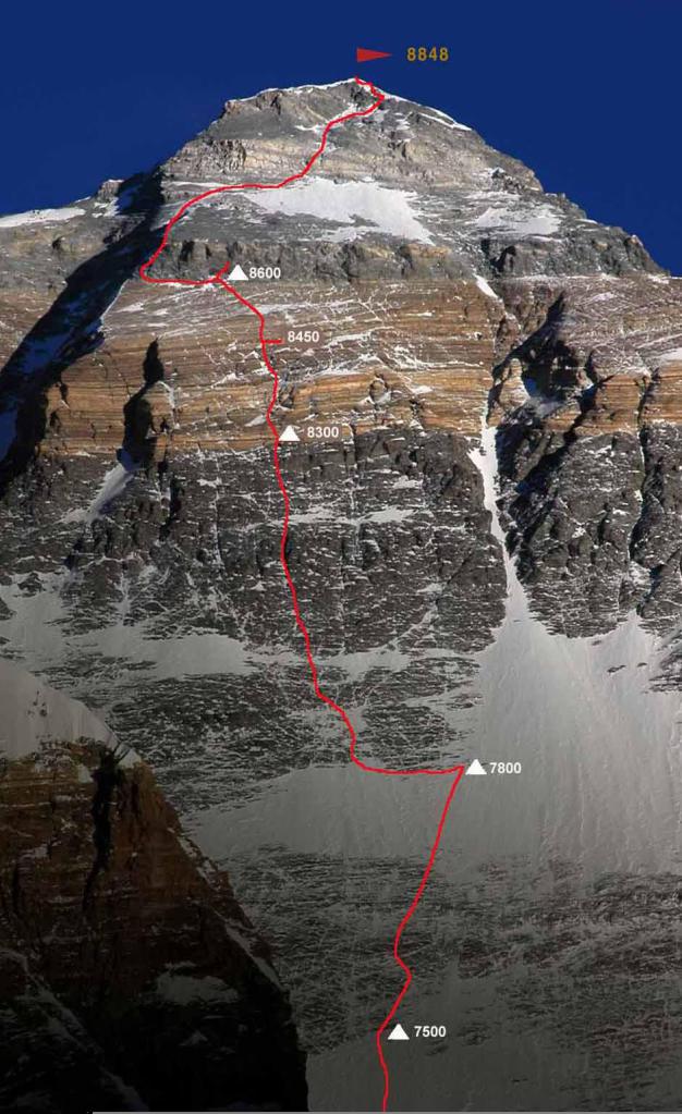 Ruta de ascenso norte. Monte Everest. Se observa con claridad la 'franja amarilla'