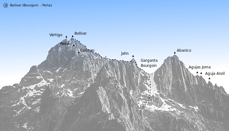 El primer ascenso exitoso hasta el pico Bolívar fue realizado por el farmacéutico merideño Enrique Bourgoin y el tovareño Heriberto Márquez Molina acompañados por el guía Domingo Guzmán Peña Saavedra, quienes alcanzaron la cima del pico a través de la garganta del hoy extinto glaciar de Timoncito, el 5 de enero de 1935. Fueron los primeros en pisar las cumbre más alta de Venezuela. La primera mujer venezolana que encumbró el Pico Bolívar el 7 de febrero de 1946, fué Blanca Josefina Carrillo de Ponte (hoy fallecida).