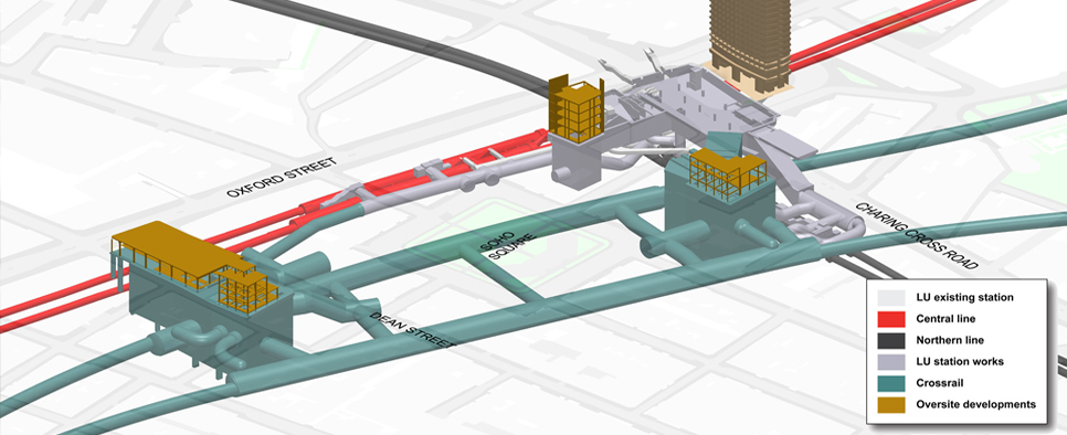 El proyecto Crossrail es la nueva vía férrea en sentido este a oeste que se encuentra en construcción por debajo de Londres, la cual comprende mejoras a 90 kilómetros de ferrocarril de superficie existente y 21 kilómetros de nuevos túneles de galería doble a lo largo de su recorrido. El proyecto incluye mejoras en 30 estaciones existentes y la construcción de 10 nuevas estaciones en Londres.