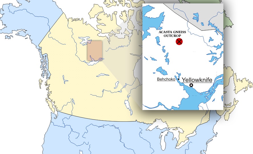 Ubicación geográfica del Gneiss de Acasta, en Canadá.