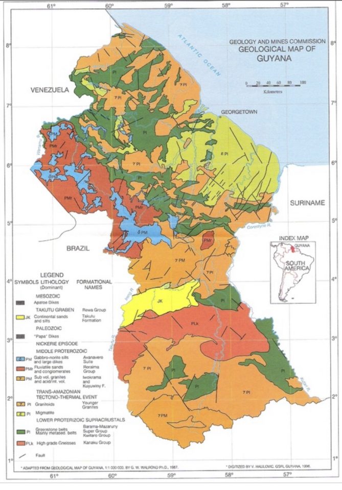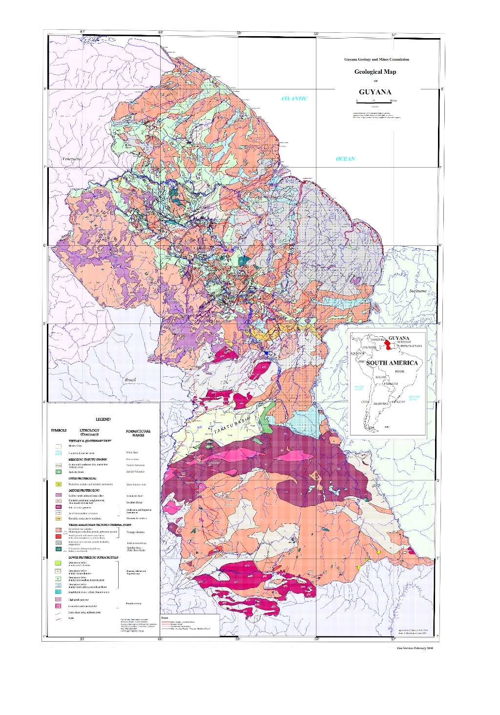 Geological Map of Guyana, Guyana Geological and Mines Commission. Version 1987