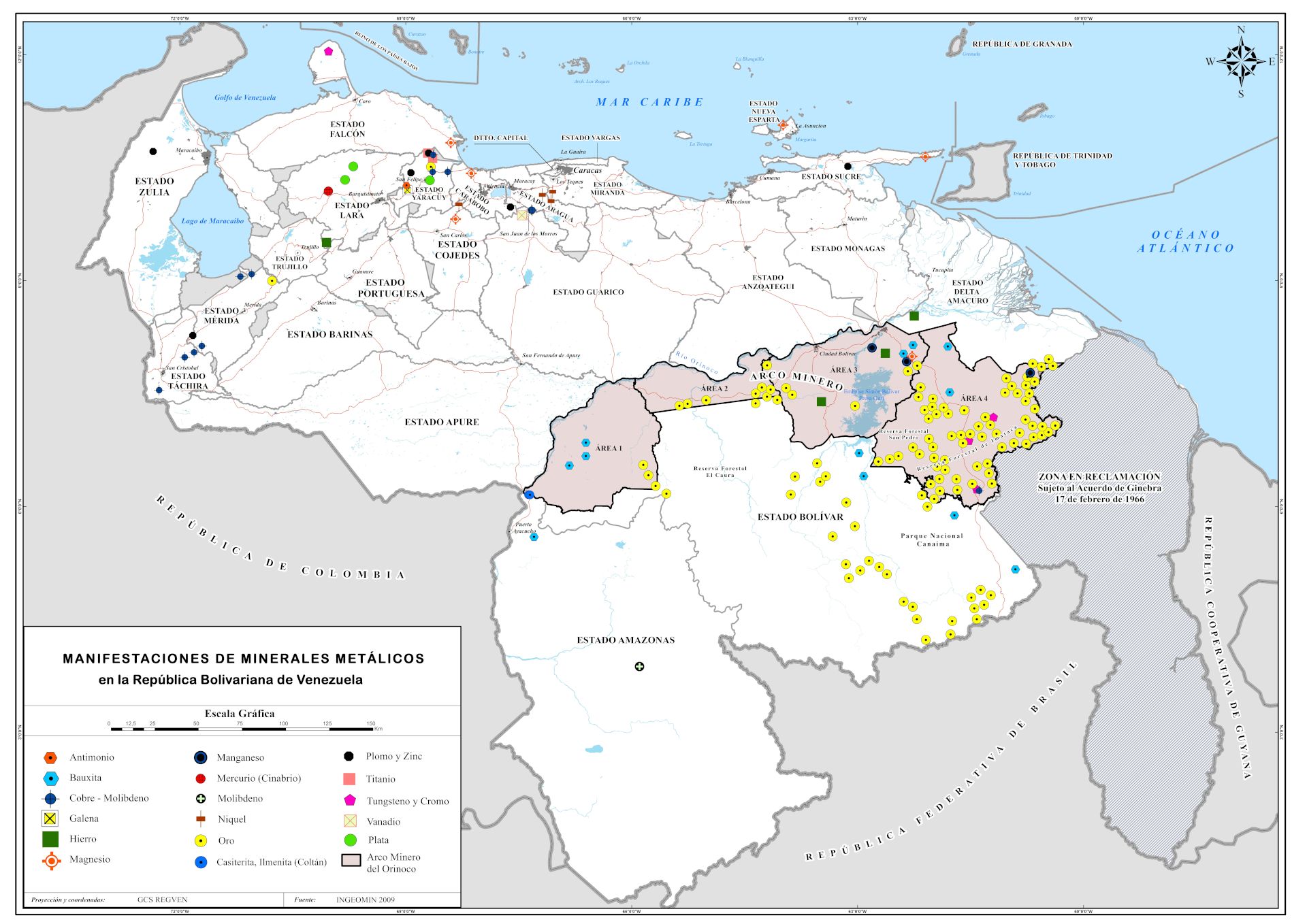 Los depósitos de Tantalio-Niobio- Casiterita más importantes han sido descubiertos hasta la fecha en Aguamena y Boquerón, ubicado a 70 kilómetros al norte de Puerto Ayacucho y en la Carbonatita del cerro Impacto en el estado Amazonas, cuyo aflora- miento es un rasgo estructural que ocurre en la intercepción de dos grandes zonas de falla N 70° E de Guri con N 20° O de la Falla de Cabruta; este episodio orogénico ocurrió después de la colisión continental que produjo las granulitas y anortositas en Santa Marta, Colombia y se conoce como orogéne- sis Nickeriana, Orinoquense o K’Madkú (equivalente a la Gren- villiana). La carbonatita de Cerro Impacto presenta un perfil laterítico de un espesor de 200 m enriquecido en niobio, torio, bario, cerio, y otros metales y tierras raras.