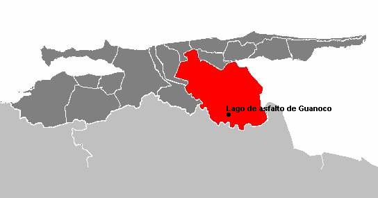 El lago de Guanoco es un fenómeno geológico el cual es considerado el lago de asfalto más extenso del mundo con 4 km² de extensión (420 hectáreas) y un volumen aproximado de 75 millones de barriles de asfalto natural.