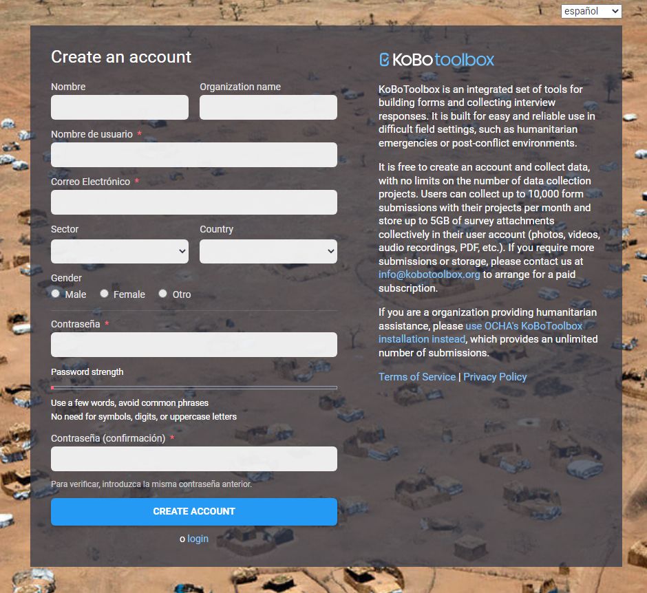 Paso 1: Crear la cuenta en KoboToolBox.