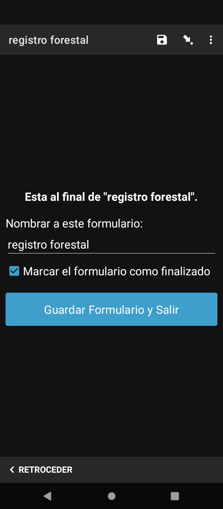 Estas instrucciones son para la versión 1.0 del formulario de Registro Forestal. La secuencia de pasos es: