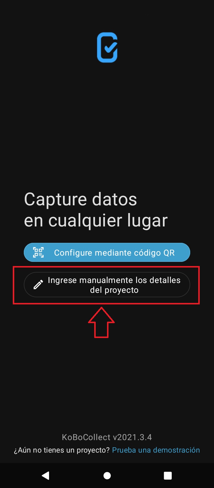 KoboCollect requiere conectarse a un servidor para recibir y enviar la información que se recolecta.